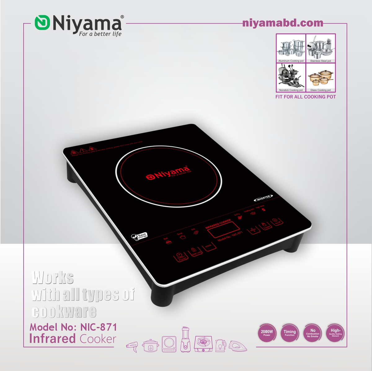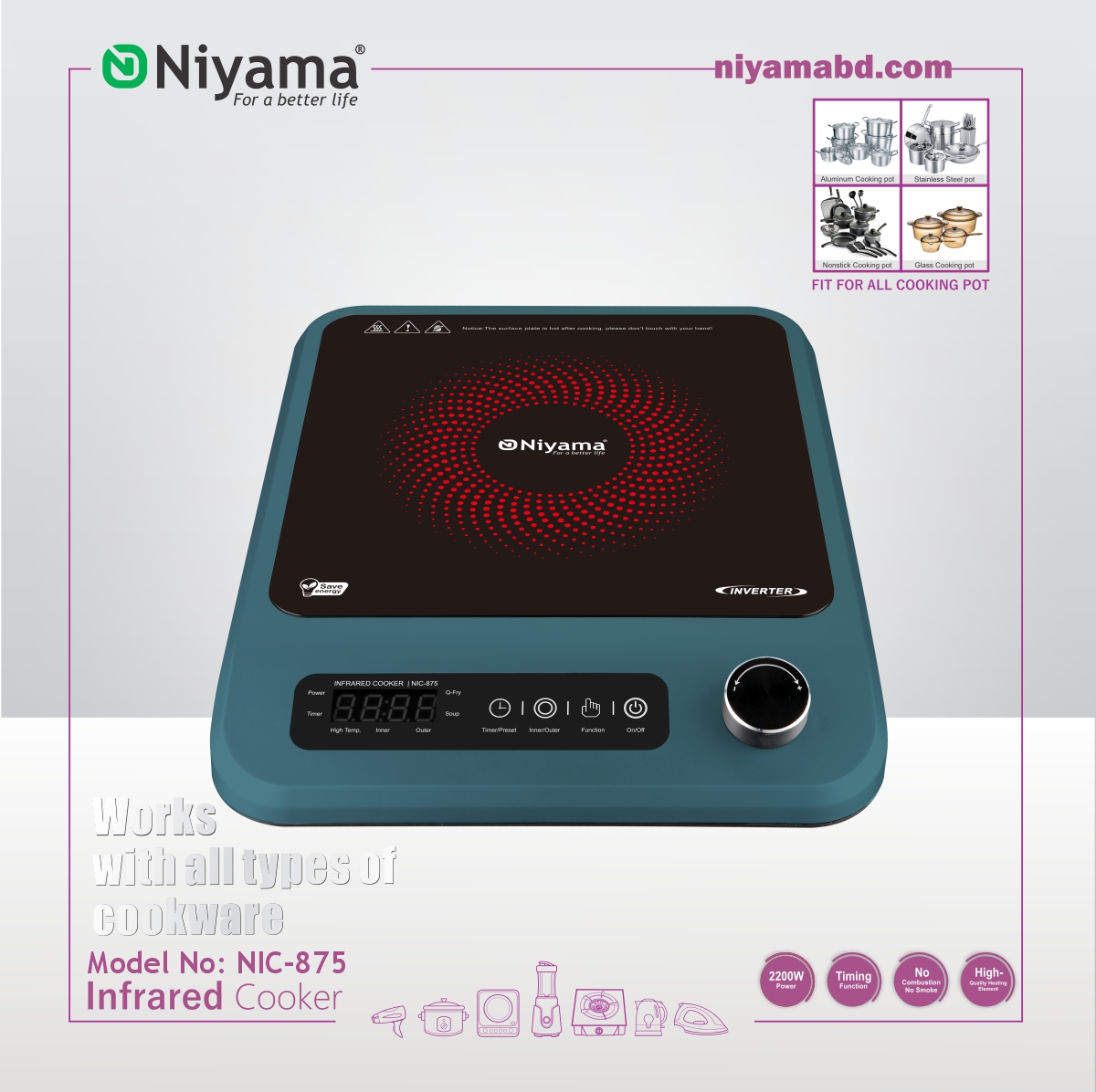 Powered by 2200W infrared technology, it delivers fast, efficient heat and is compatible with all types of cookware—metal, glass, ceramic, and more. With touch control, temperature settings, and a built-in timer function, the NIC-873 offers versatility for boiling, frying, grilling, and simmering with ease.