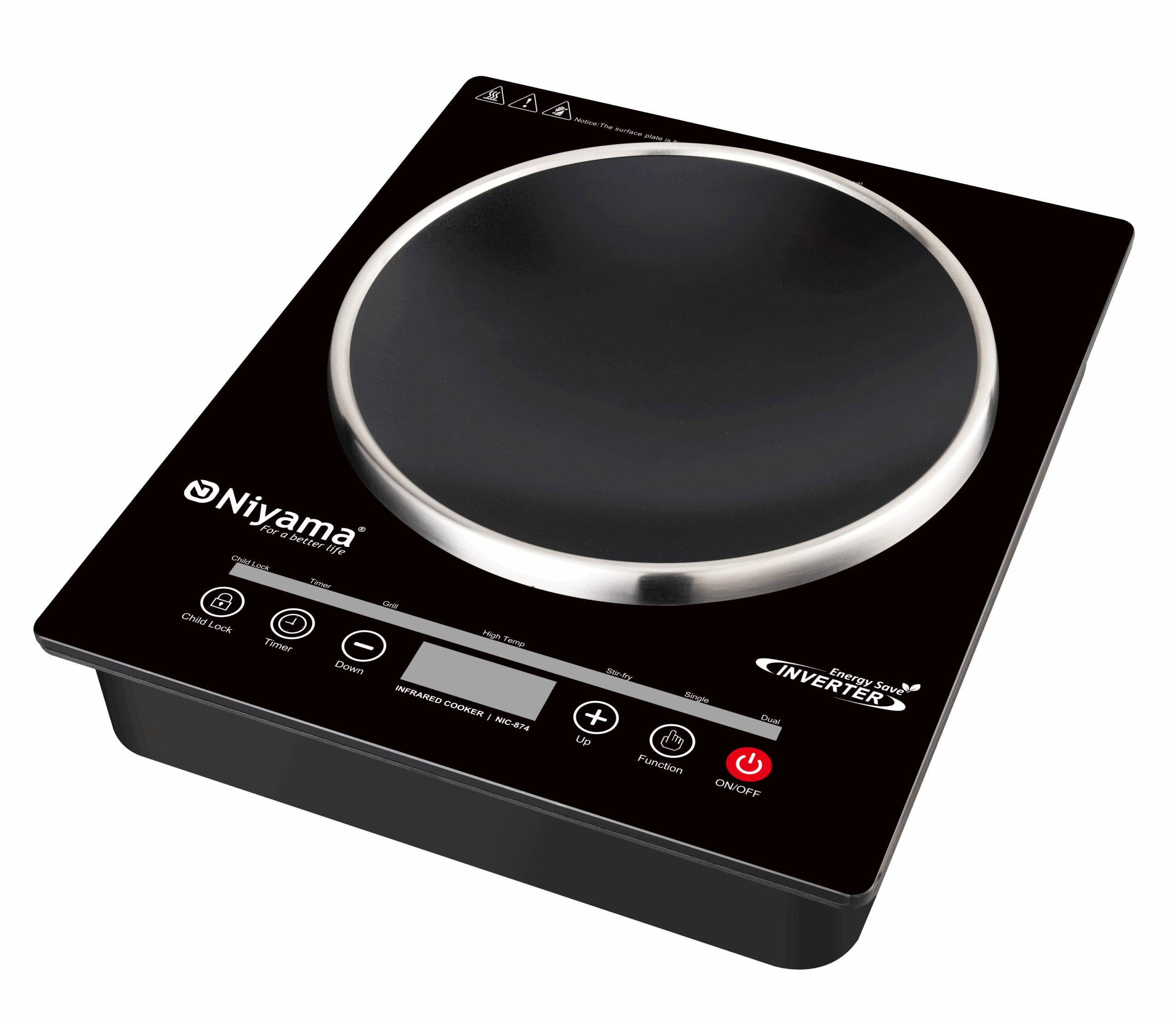 Elevate your cooking experience with the Niyama NIC-874 Infrared Cooker, part of the sleek Curved Panel Series. Designed for modern kitchens, this infrared cooker features a stylish curved interface, responsive touch controls, and a clear LED display for effortless operation.